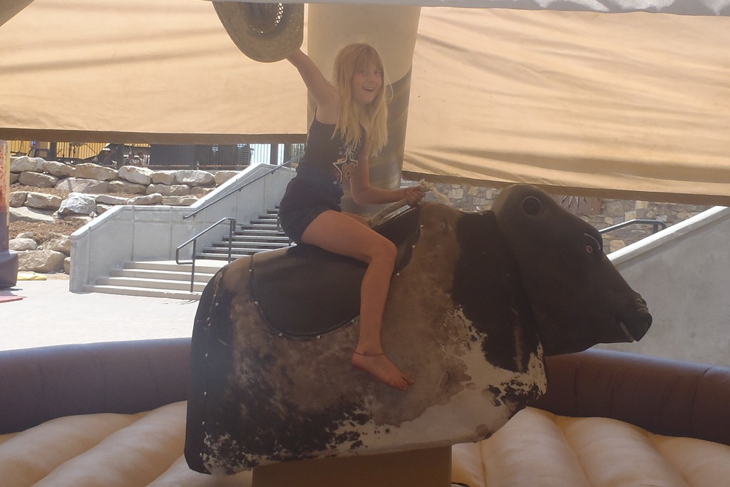 Tuesday’s activities were a little more adrenaline-filled. We took the kids, Joe and Jack to the Durango Mountain Resort where we rode the mechanical bull, jumped high on the bungee trampoline, slid down the zip line and scaled the rock climbing wall.