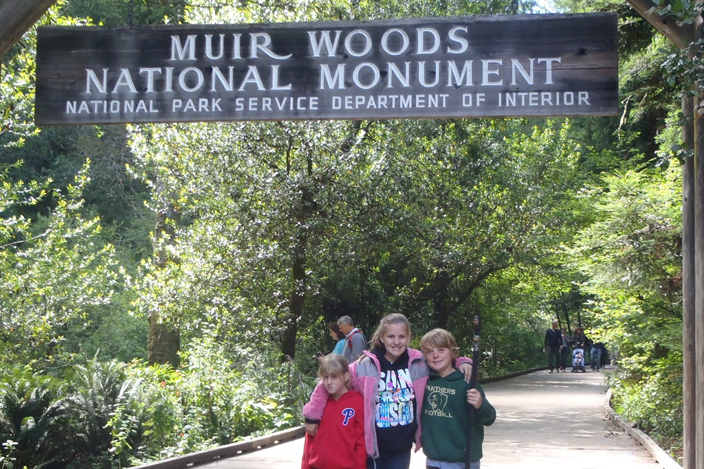 Our plan for the afternoon was to visit Muir Woods National Park. Muir Woods, named for explorer and naturalist John Muir, is one of our countries oldest national parks and is home to one of the last areas of “old growth” redwoods on the planet. We walked through the groves of redwoods and took pictures. It was cool and peaceful. The kids enjoyed standing in the trees that had been hollowed out by years of fires.