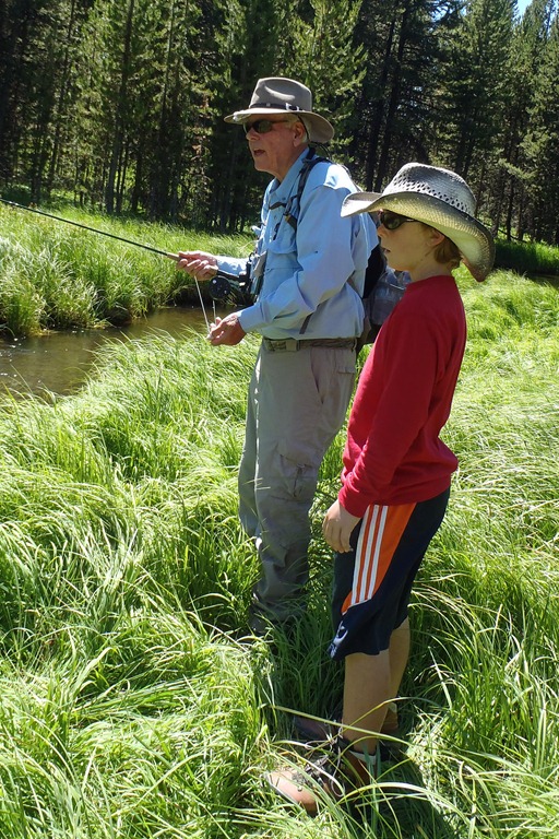 Saturday Colin was in tip top shape and ready for a fun day with Dad.  Jeff had booked a fly fishing trip with Parks’ Fly Shop for the two of them.  They set out with  their guide, Wilson, and learned the art of fly fishing.  Wilson was very knowledgeable and patient with Colin and in no time they were pulling in fish.